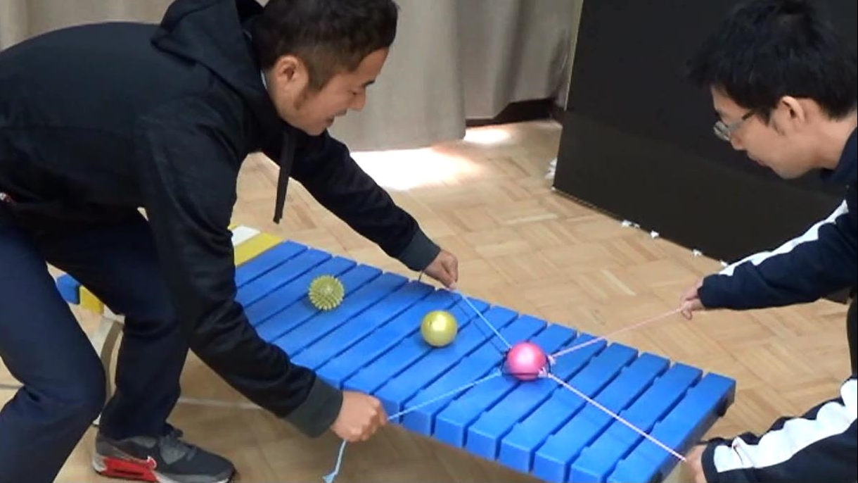 一緒にひっぱれ大きく広げろ!ビョーンキャッチゲーム | 相手と協力してボールを挟んで、動きを合わせてボールを運ぶ。 | 知的障害教育 |