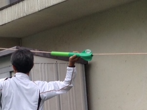 斜め上方に張ったロープに通した筒を持って投げる。この時、補助者はロープの低い方の端を持ち、投擲者の肘の位置が下がらないよう留意してロープを引っ張る。 ・ロープの素材は、比較的滑りが良いもので、かつ投擲物との接触により音を発する素材が良い。 ・筒の素材は、できるだけ実物に近い形状のものを使用すると良い。 |
