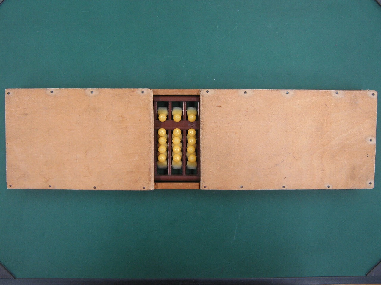 ・木製。 ・使用する児童によって、開ける窓の大きさを2けた、3けた、4けたと変えて作製するとよい。 ・そろばんによって微妙に大きさが異なることに注意する。 |