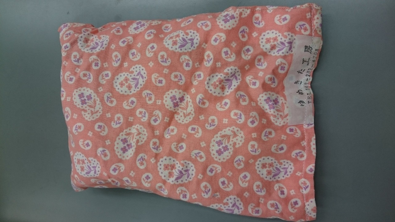 ペットボトルのキャップ35個を20cm×15cmの布袋に入れて作る。(キャップの量や袋の素材、大きさは工夫可能と思われるが、実際に使用してみて使いやすい大きさ重さである。) |