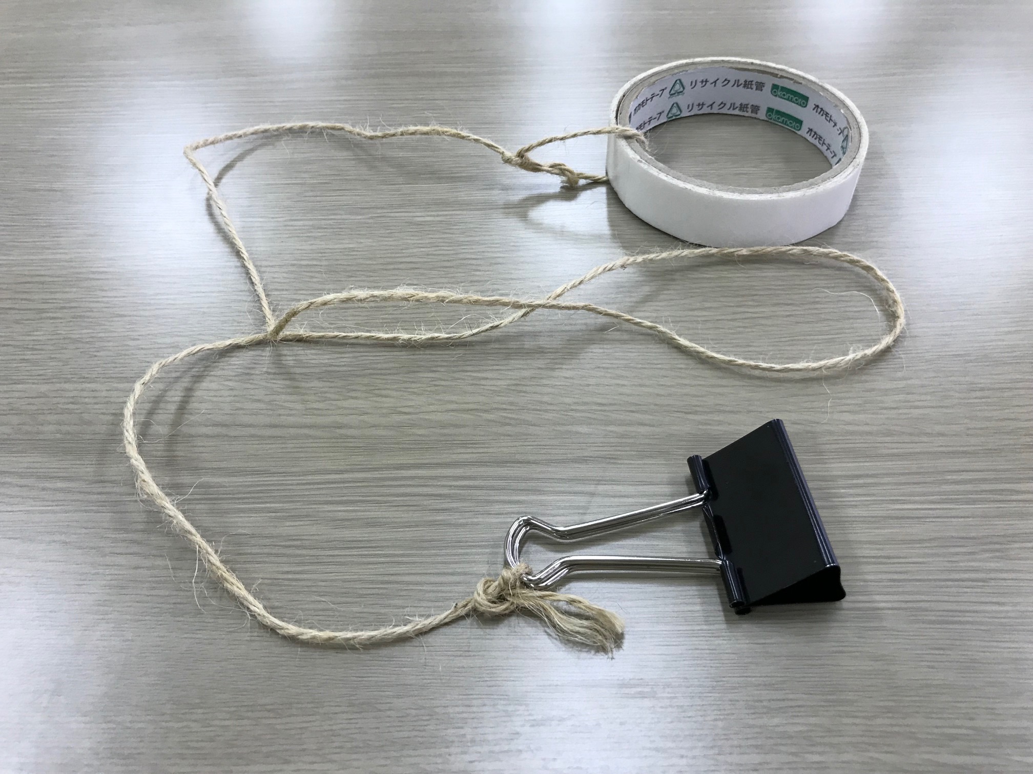 紐に重りをつけることで、どんな持ち方をしても垂直に落ちやすい仕様になっている 紐がぴんと張る感覚をつかむまでは、教員などと一緒に行うとよい |