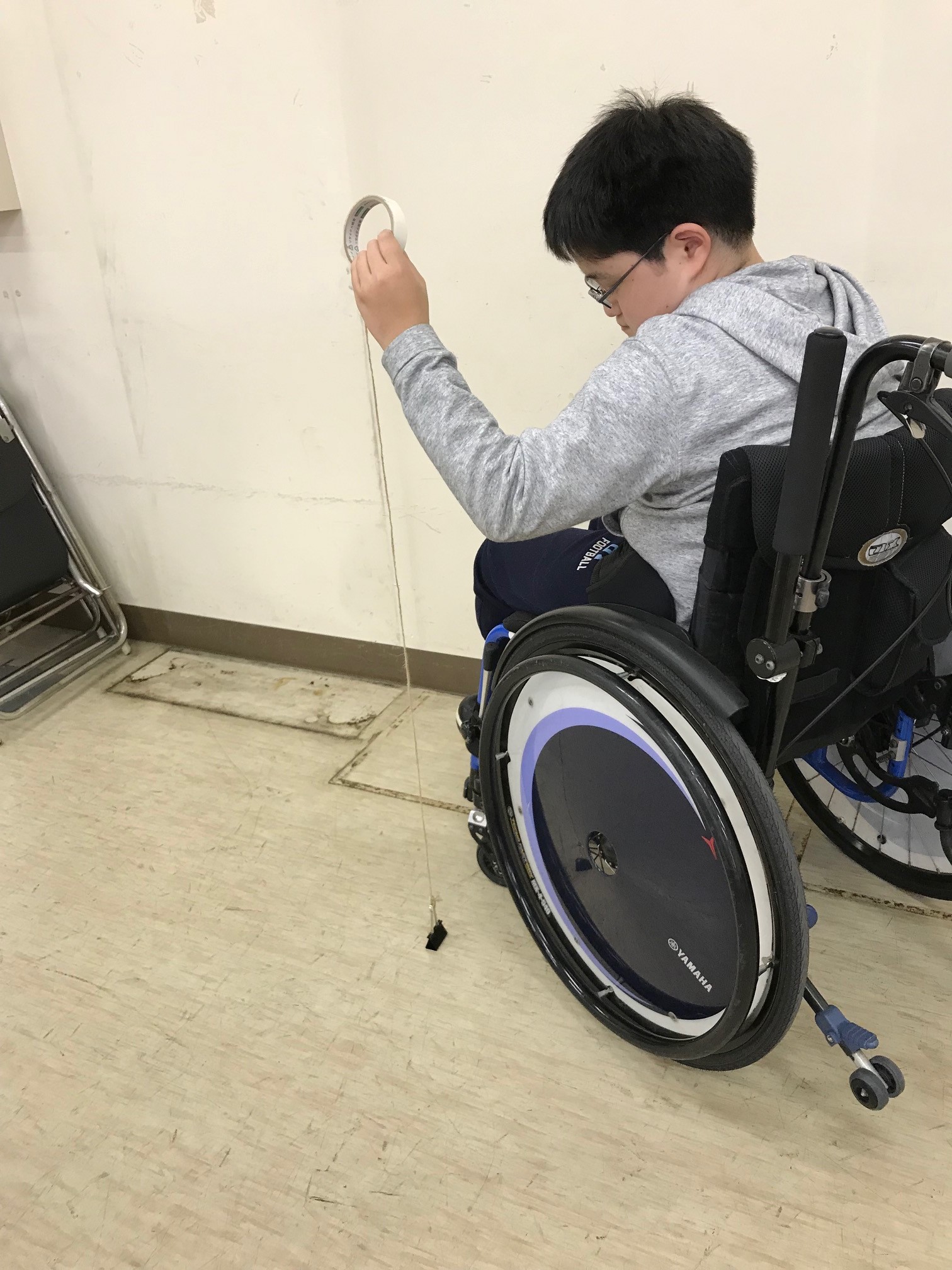 日常的に車椅子を使用している児童生徒が、高さや長さの感覚を養うことを補助する 自主的に色々な場所の1mを確かめることを楽しむ |