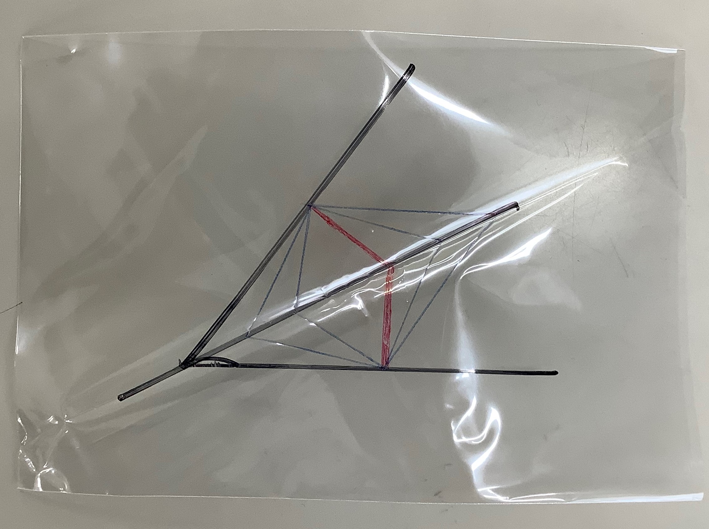 線対称図形,二等分線の作図の学習で用いることができます。生徒に書かせる際は生徒ごとに対応します。教員が作成し見せるだけでもイメージの手助けになります。対称軸で折り曲げて,実際に重なることを見せます。 |