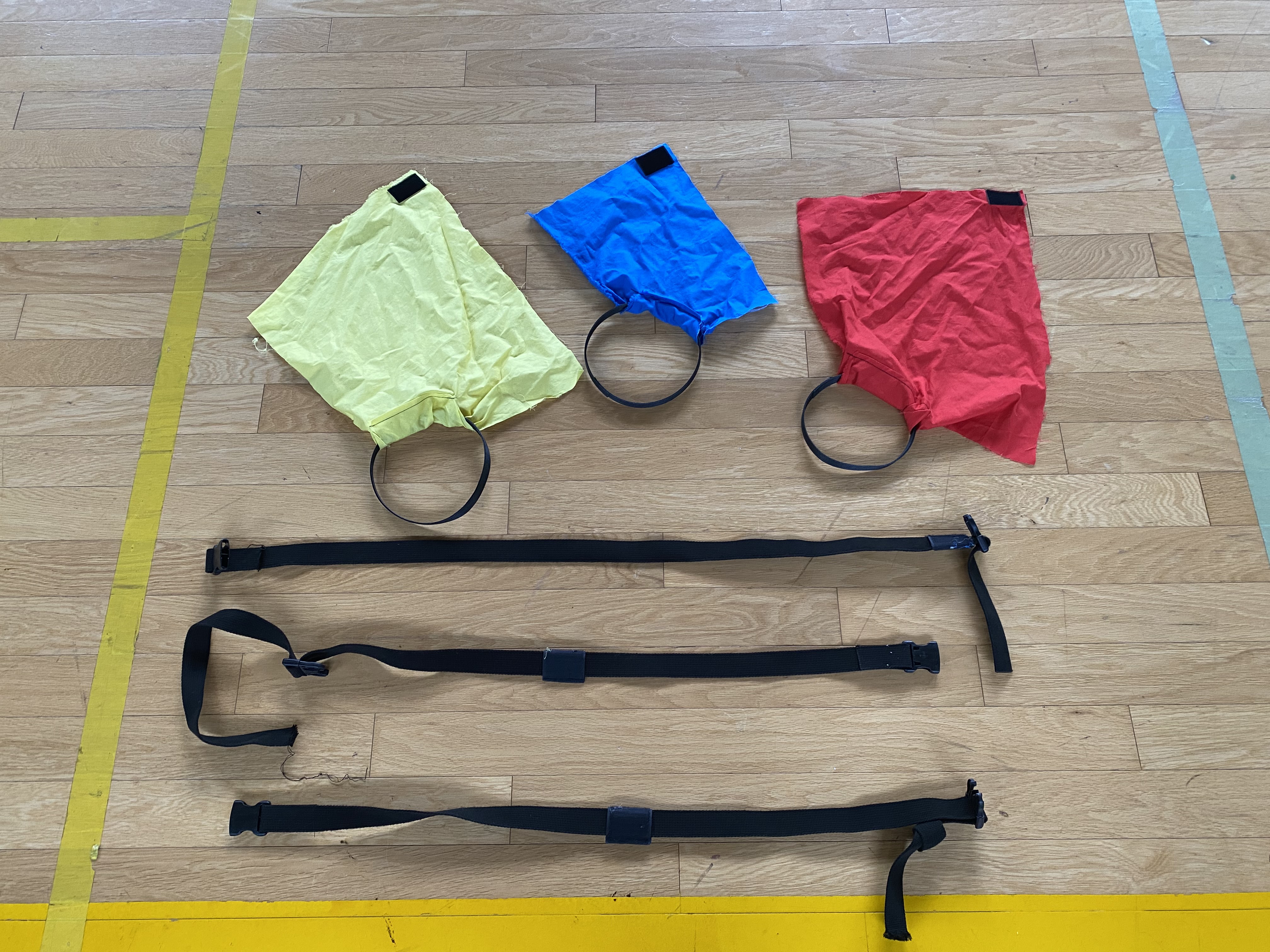 ・しっぽの先に輪っかを付けることで、握る動きが苦手な児童・生徒も手を引っかけて相手のしっぽをとることができる。 ・しっぽの色を変えることによって、仲間と相手を見分ける手掛かりとなる。 ・しっぽを捕った時にマジックテープがはがれる感触と音がするので、しっぽを捕ったことや捕られたことを実感しやすい。 ・ベルトには長さを調整できる留め具を使用し、児童・生徒の身体の大きさや、車いすの大きさに合わせて使用することができる。 |