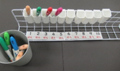 ・具体物の選び方:意欲的に学習に取り組むことができるように、児童生徒にとって、身近な人の顔写真や、興味のある物を使用す る。 ・動画の活用:見通しをもって、自分で数える活動を行うことができるように、教師が作成した動画を使って、教師の歌声を聴いたり、イラスト等の動きを見たりする。 ・操作の始点と終点:具体物を操作する際に、物を入れる、物をはめるなどして、活動の終わりが分かりやすいようにする。 ・学習のステップ化:徐々に学習に慣れてきたら、助数詞を含めた数字カードから、助数詞が書かれていない数字のみのカードへと 変える。 |