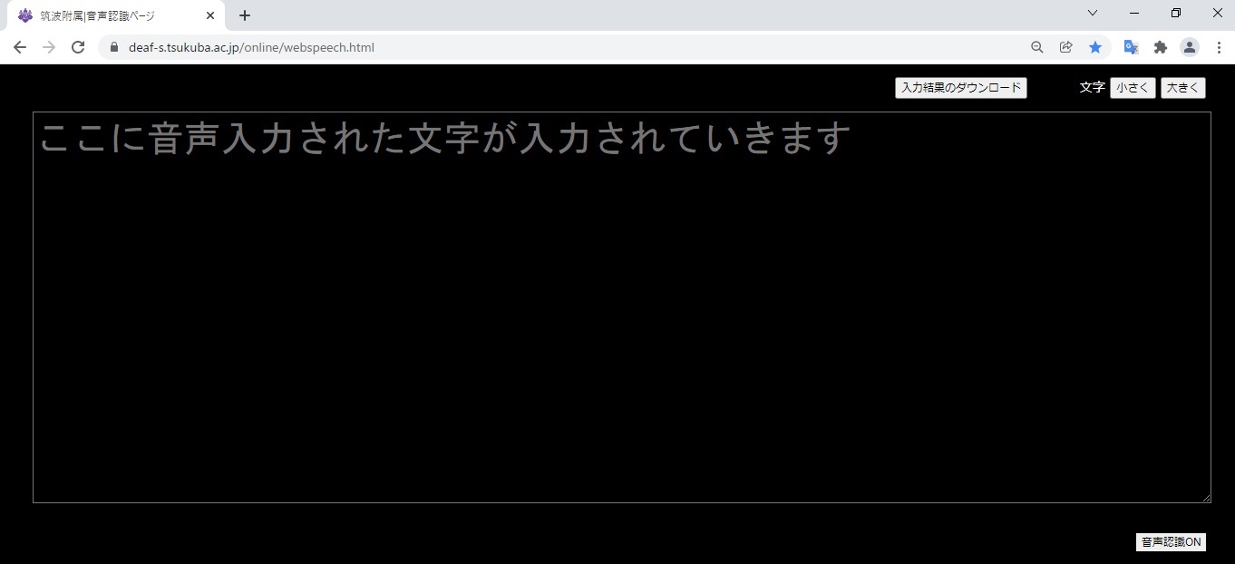 ・アプリURL https://www.deaf-s.tsukuba.ac.jp/online/webspeech.html JavaScript、HTML、CSSでプログラムした自作WEBアプリである。 上記の本校サーバーに置いて利用している。 ・AmiVoice音声認識用マイクデバイスURL(アドバンスドメディア) https://www.advanced-media.co.jp/products/service#amivoice_front |