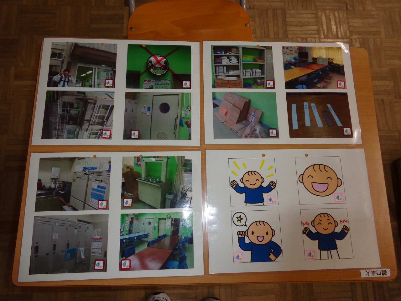 対象 自発語の無い知的障害特別支援学校高等部の生徒。見通しが持てない活動に不安を感じることが多い。写真やイラスト、音声などで繰り返し確認することで安心することができる。