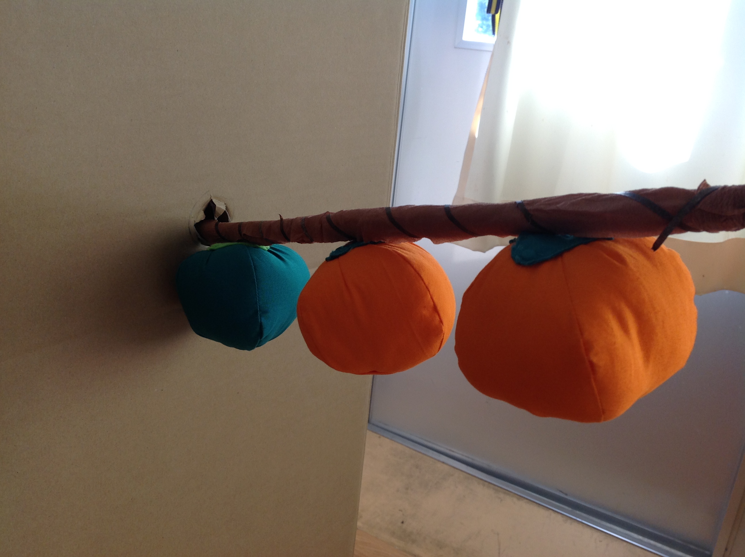 ・空中にある柿の収穫体験ごっこができます。 ・色の弁別をしたり、数えたり片づけたりできます。 |