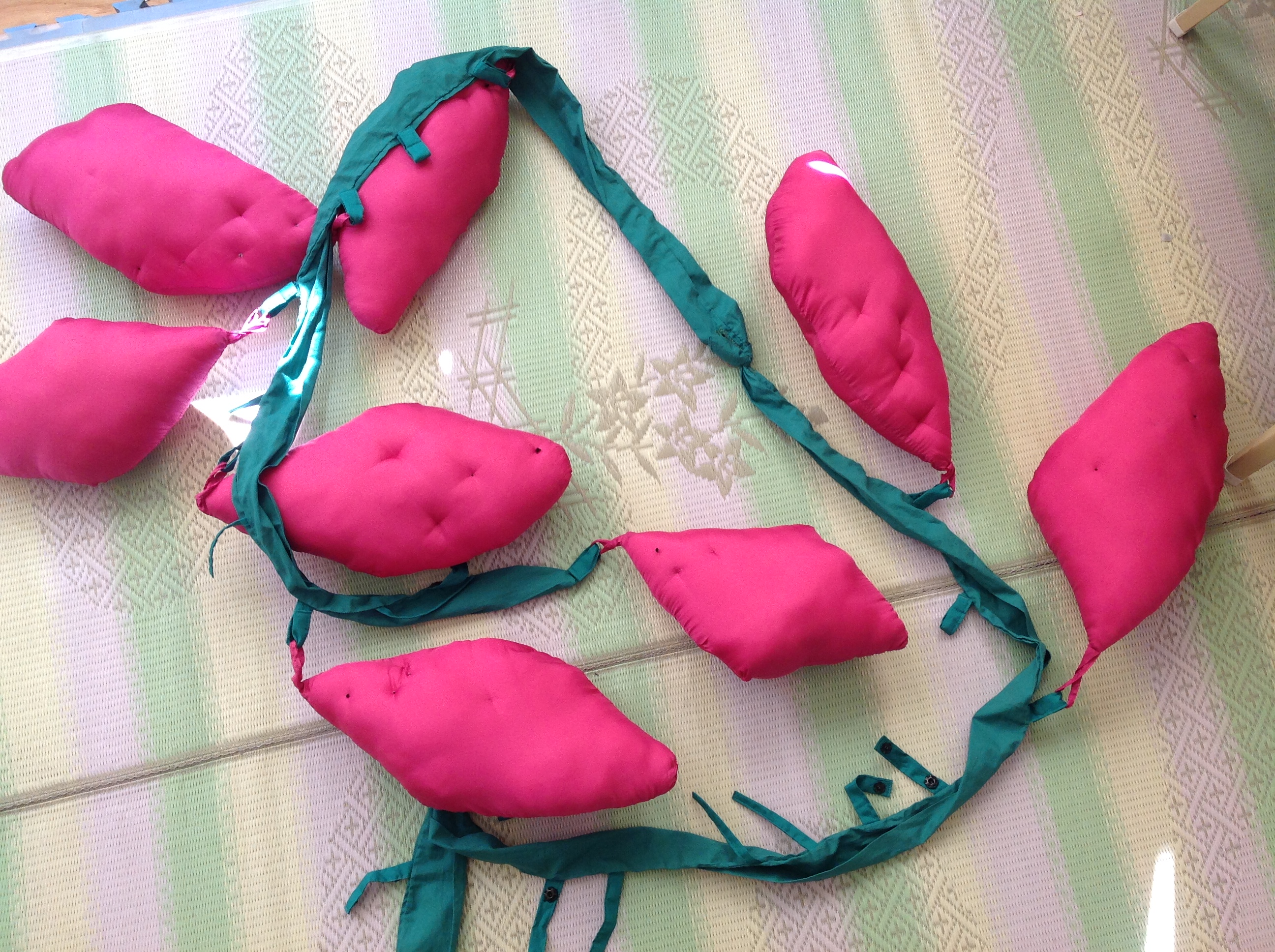| 障害特性に対する配慮点 | 着脱可能なさつまいもなので、実態に応じて数を増減でき、重さを変えることができます。同じように蔓も連結が可能で、長さを変えることができます。 |