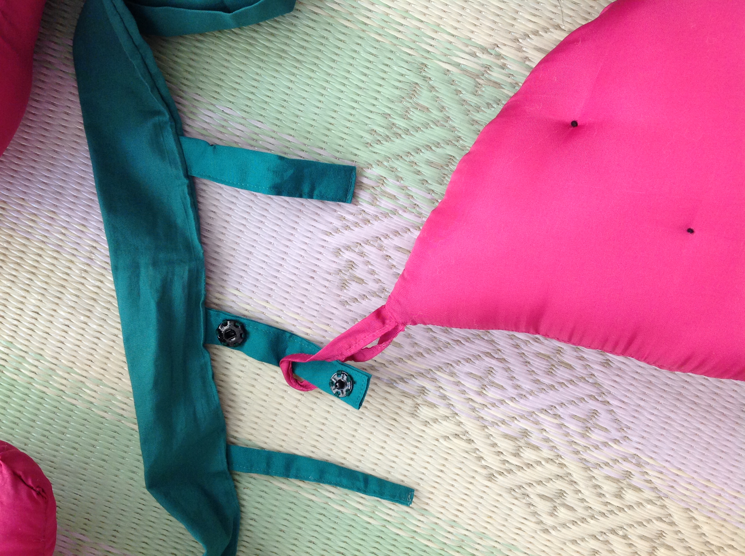 さつまいもはすべすべした感触のサテン生地を使用しています。 ・さつまいもに関する絵本の読み聞かせ後に、蔓だけ畑に見立てた箱などから見せ、子どもたちで引っ張ります。 ・蔓に着けるさつまいもの数を変えて、数を数えます。 ・ある程度の重みと大きさがあるので、抜いたり運んだりする際に、達成感を味わえます。 |