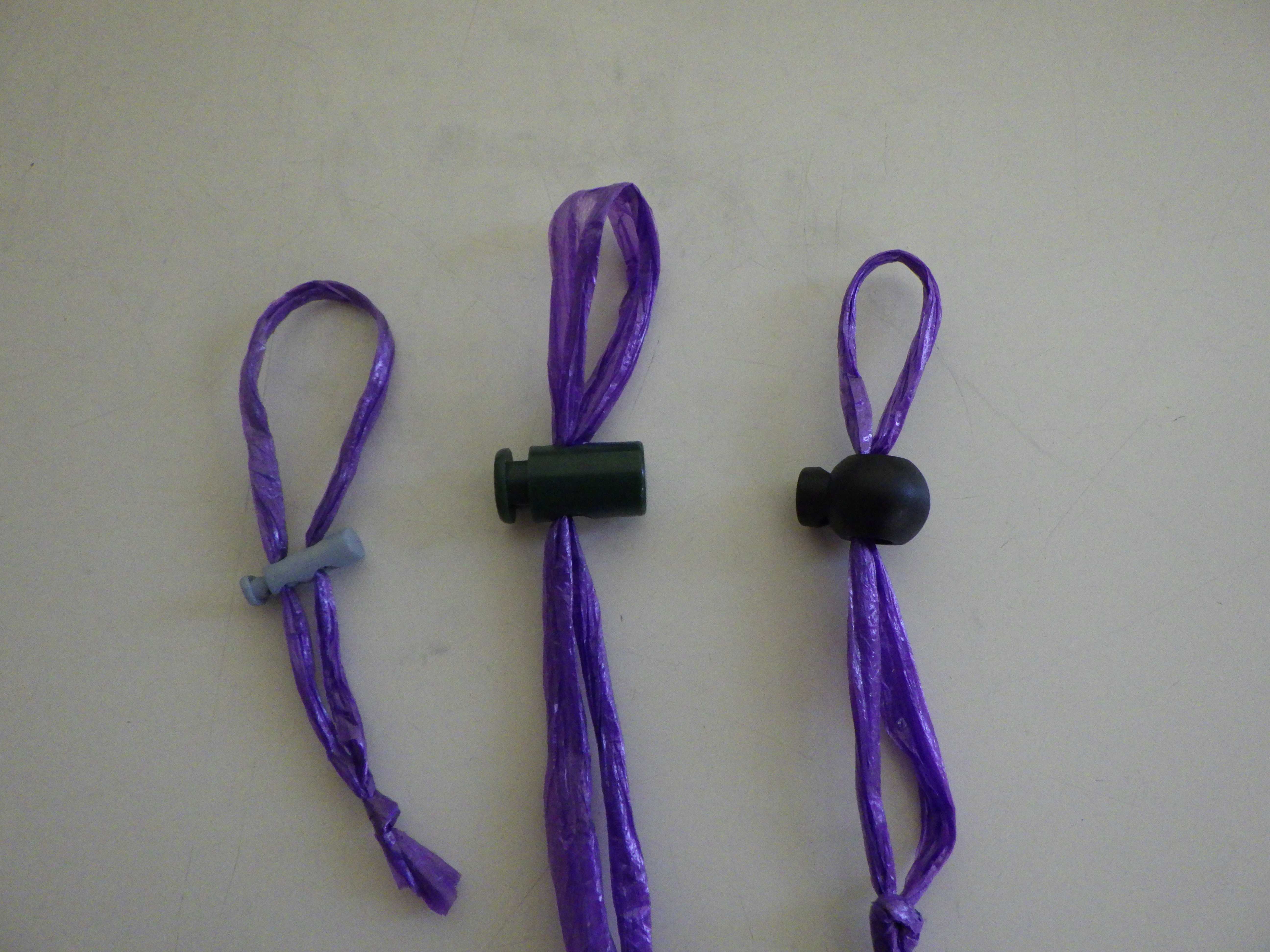 ・スプリングコードストッパーの穴の大きさによっては、紐が細いと輪が緩みやすくなります。 ・染液が染み込まない紐の方が、染めたときに模様がはっきり出ます。 |
