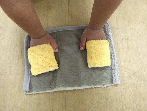 ・手を入れる位置が決まっているので、正しい姿勢がとれる。 ・素材に厚みがあり、一般的な雑巾よりも力が入れやすいため、力が分散せず進める。 ・好きな色を選んで楽しく学習ができる。 ・雑巾がけ同様に床面がきれいになる。 |