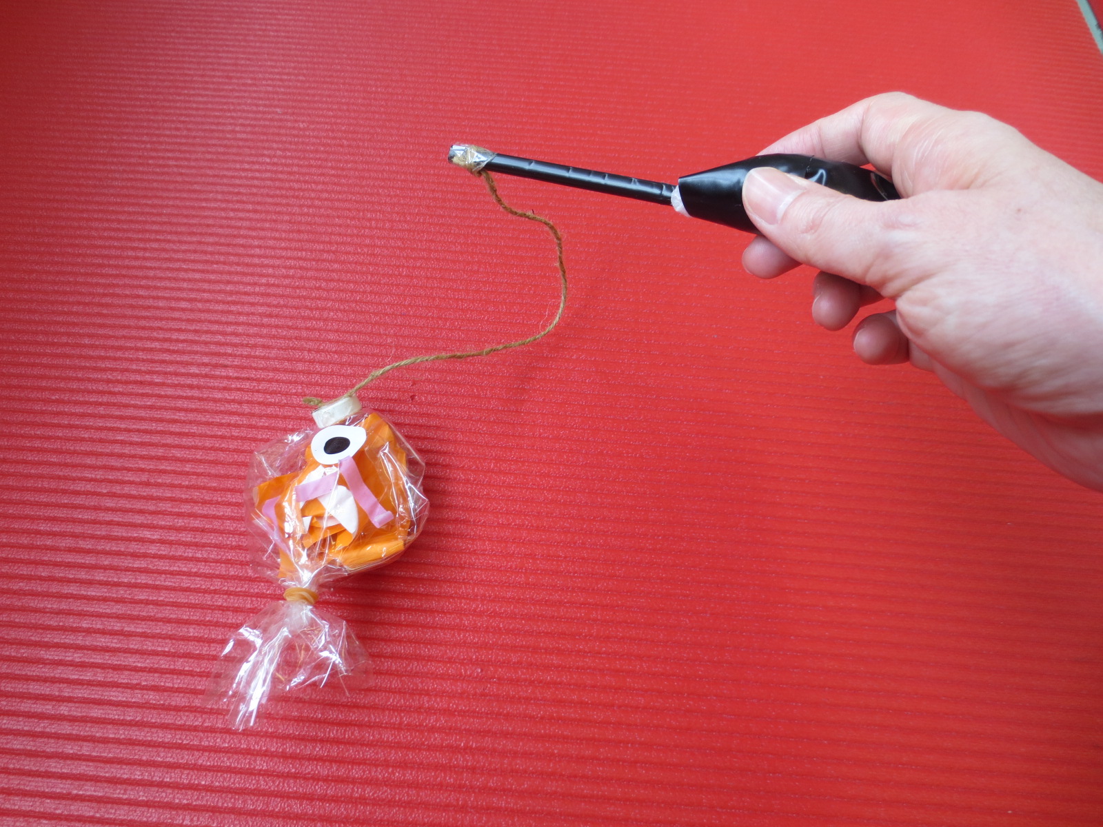 ・教材がにぎりやすく少ない力で操作しやすいため、手指に拘縮がある児童生徒でも使用しやすいです。 ・障害の重いお子さんも、目で捉えやすいカラフルな折り紙やラッピング袋の音(カサカサ)、マグネットがすずに接着したときの音(カチッ)等、視覚や聴覚を手がかりに学習することができます。柔らかく、操作しやすい素材を多く使用しているため、完成した教材を使うだけではなく、教材を授業の中で一から作ることができます。 ・魚つりの教材例では、さおにわりばしを使うことがありますが、本教材はストローを使用しています。身体の筋緊張が強く、思ったように手を動かせず、握っていたさおが誤って身体に触れた場合でも痛くなく、ケガをしにくいように考慮しています。 |