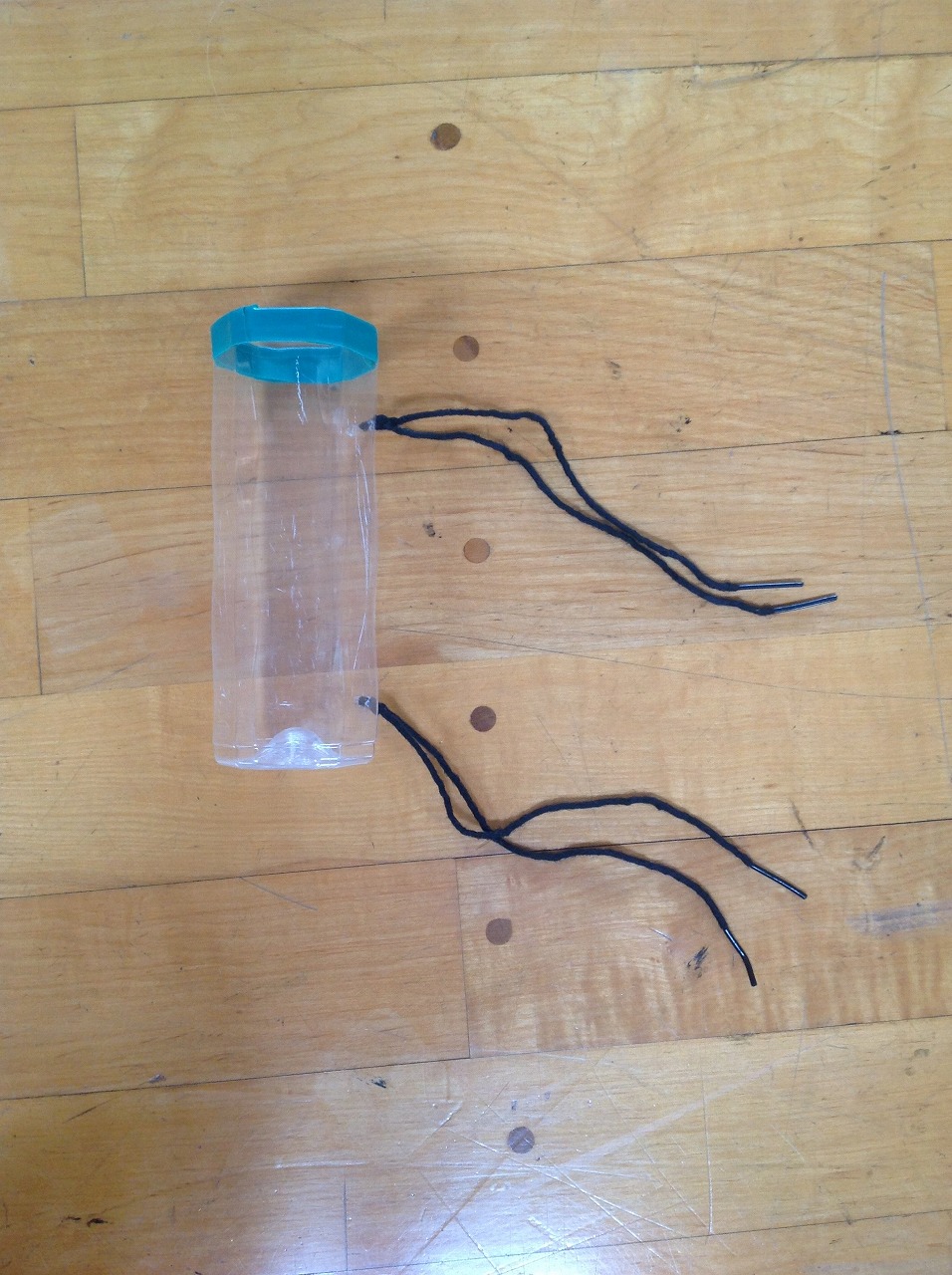 * The baton holder is made from a slim plastic bottle, filing laces, and plastic tape.