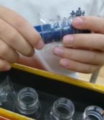 | Expected effects and results | ・Children who became able to string these plastic bottle beads soon became able to smoothly string ordinary beads. (Because ordinary beads come in a variety of shapes and the difficulty in locating their holes varies, the children were first sufficiently familiarized with large and small cylinder beads and were then moved on to round and cubic beads.) |