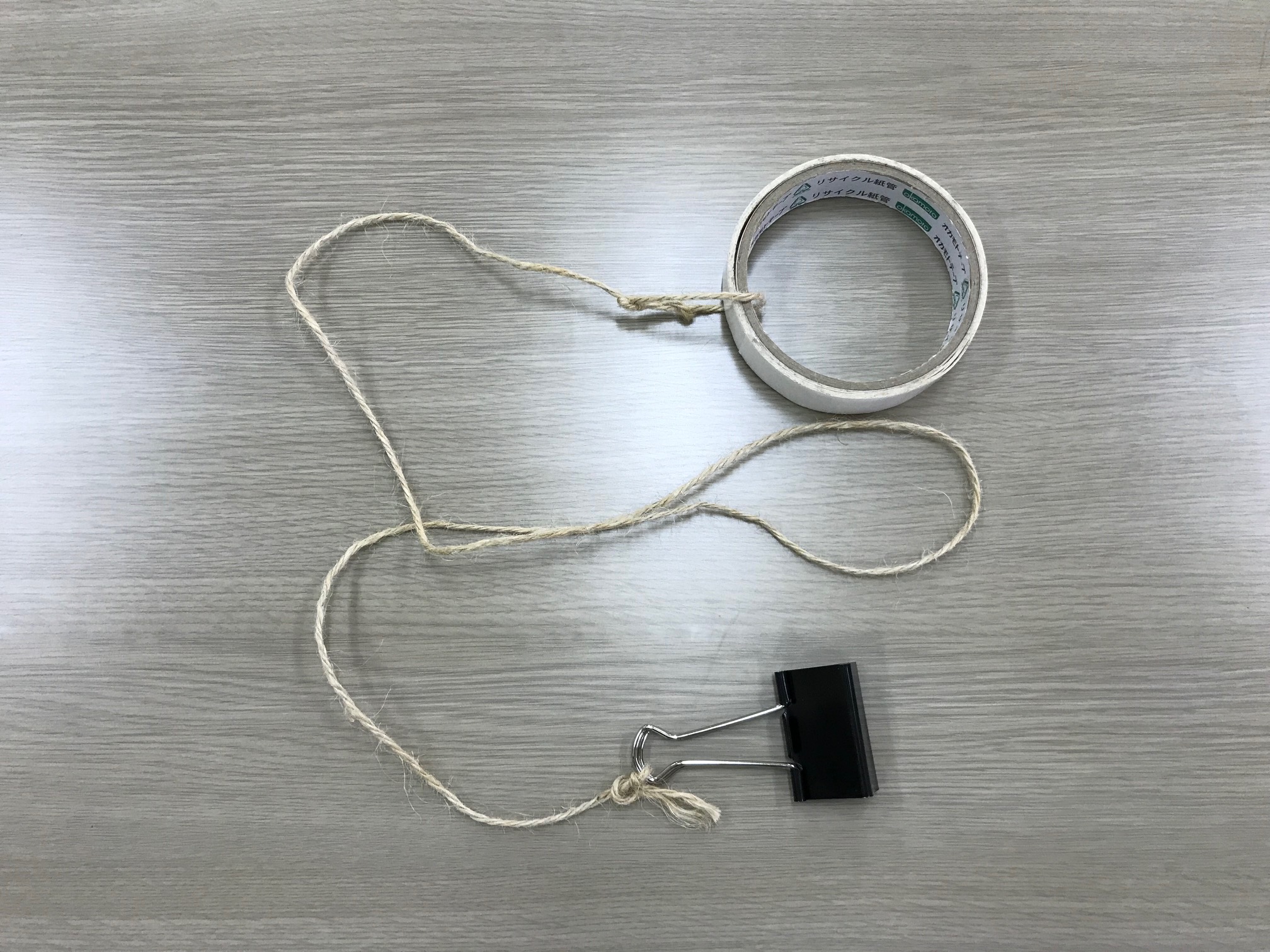 紐に重りをつけることで、どんな持ち方をしても垂直に落ちやすい仕様になっている 紐がぴんと張る感覚をつかむまでは、教員などと一緒に行うとよい |