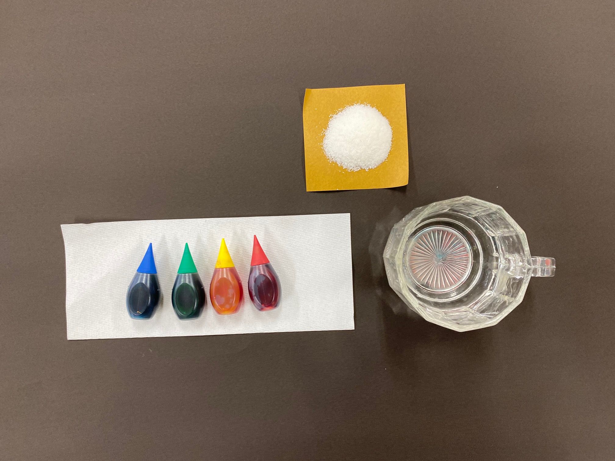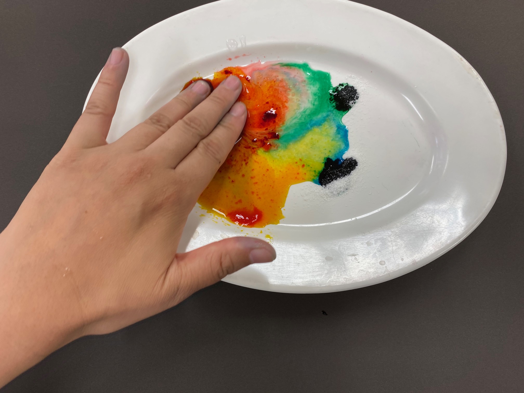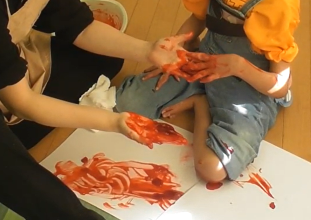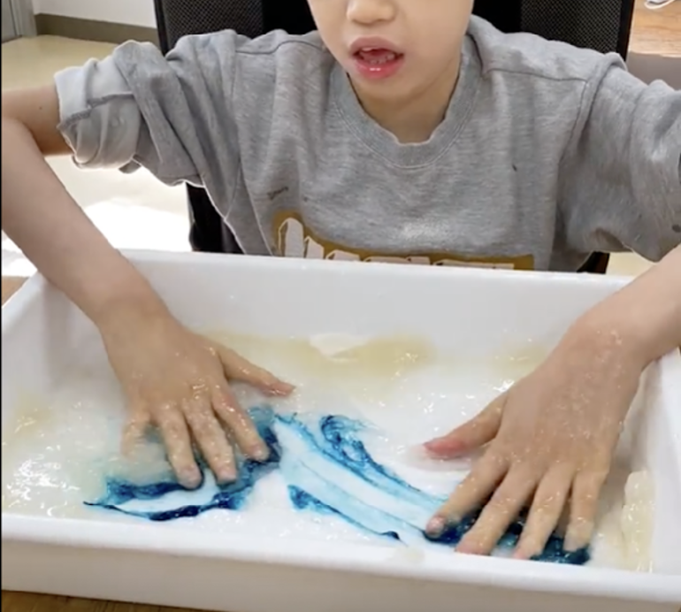 ・取り扱いが簡易かつ安全な素材で指絵の具遊びを楽しむ ・ぬるぬるとした触感を指先等で感じて楽しむ ・色が混ざっていく様子をゆっくり観察する |