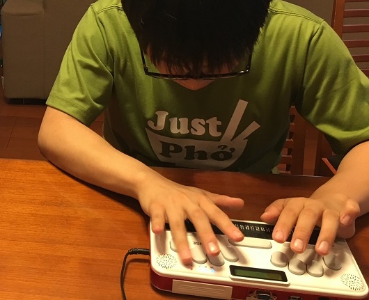 ・ブレイルセンスは点字や音声のみを頼りに操作が可能な携帯情報端末であり、同時に機器が単体であるため、持ち運びが可能である。 ・ブレイルセンスを活用した電子メールでは、点字での読み書きが可能である他、送信先の機器には墨字(普通文字)として送信者の入力した文字が表示されるため、点字使用者からメールを受け取る側は点字の知識を必要としない。 ・漢字等にも対応していることから、状況に応じて、ひらがな、カタカナ、漢字を使い分けることが可能である他、漢字に変換する際には、漢字の読みが点字や音声で表出されるため、漢字を書いたことがない生徒であっても、読みと意味を確認しながら漢字を選択することができる。 ・パソコンのALTメニューに相当するメニューには、新規作成や新規メールの受信などのアクセス項目が入っているほか、ショートカットキーを活用することで、視覚に障害があっても効果的にメールの作業を行えるようになっている。 ・電子ファイルの添付による共有も可能である。 |