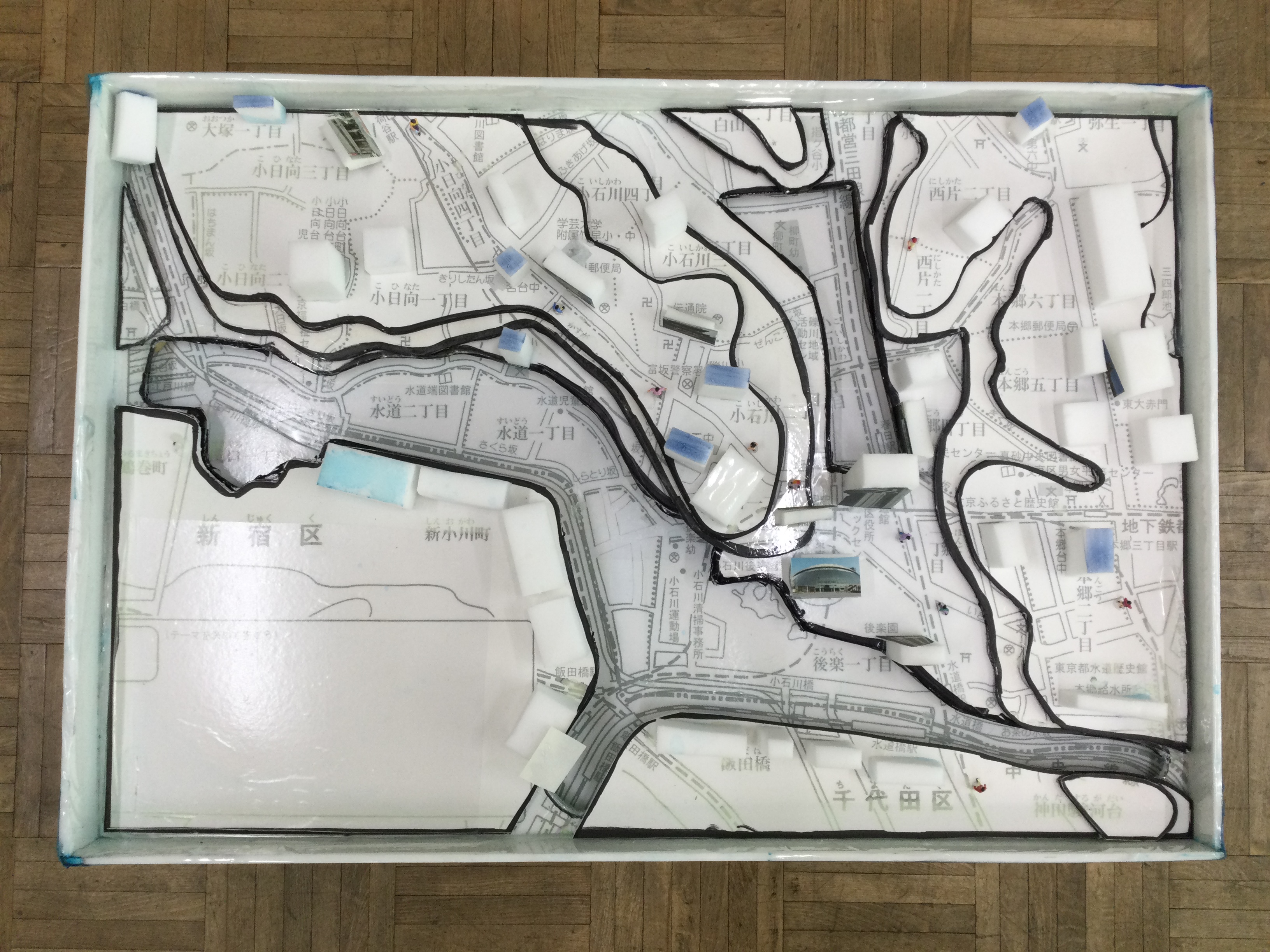 ・風水害が起きやすい場所や地形を知る。 ・文京区の地形は、高い場所と低い場所がるということに気づき、より安全な場所にフィギュアを置こうとする。 |