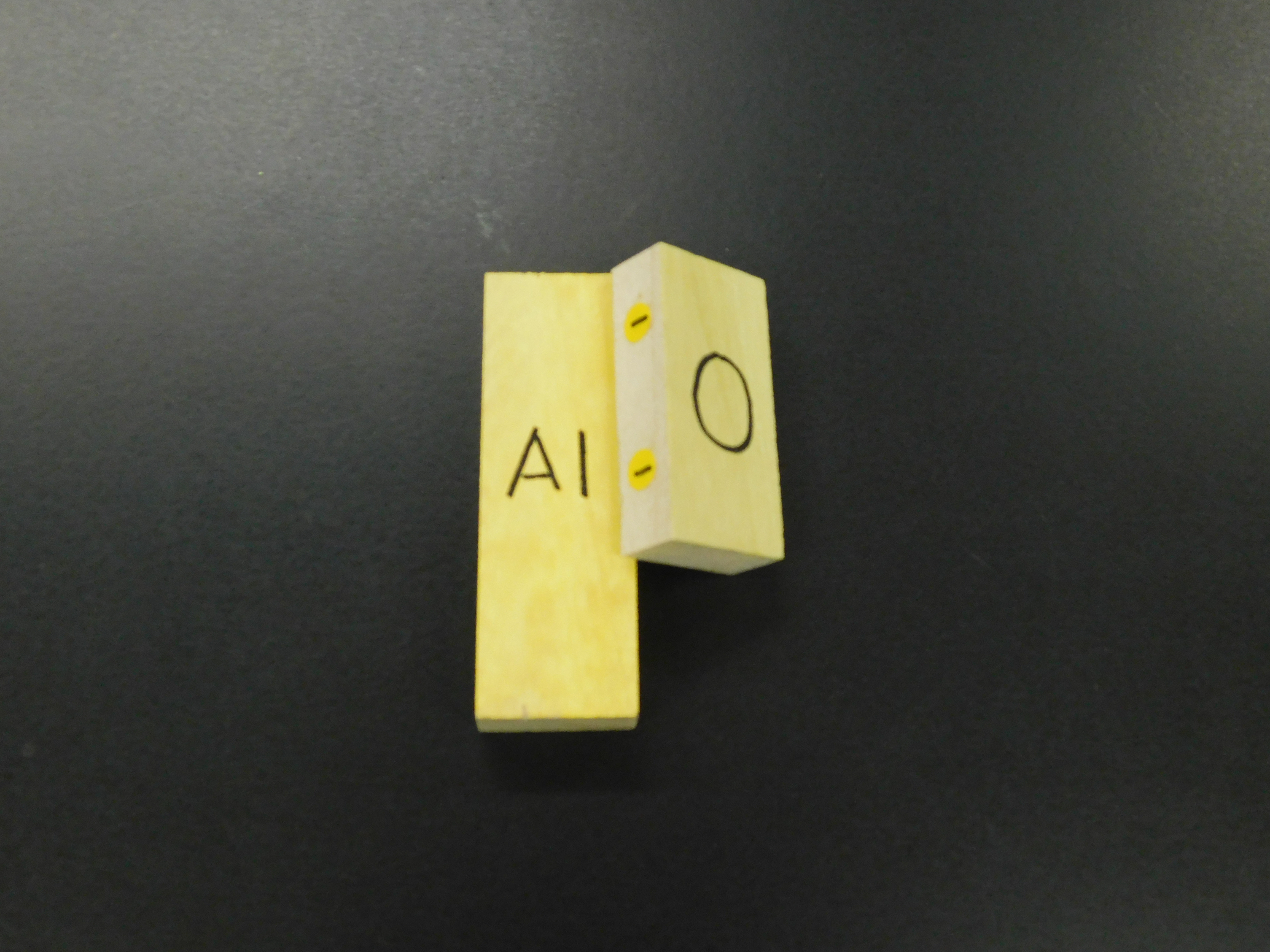 ・磁石を,陽イオンは右,陰イオンは左に埋め込むことで,完成したモデルがそのまま組成式になるようにする。
