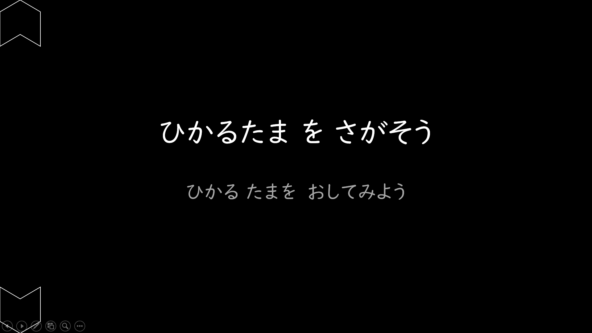 | 障害特性に対する配慮点 | 動く「たま」や大きくなる「たま」、点滅する「たま」が表示され、マウスクリックすると次に進むPowerPoint教材です。黒背景に黄色の「たま」にしたり、「たま」に動きや大きさの変化を加えたりして、視覚を活用しづらい児童生徒が「たま」に気付きやすくしています。 |