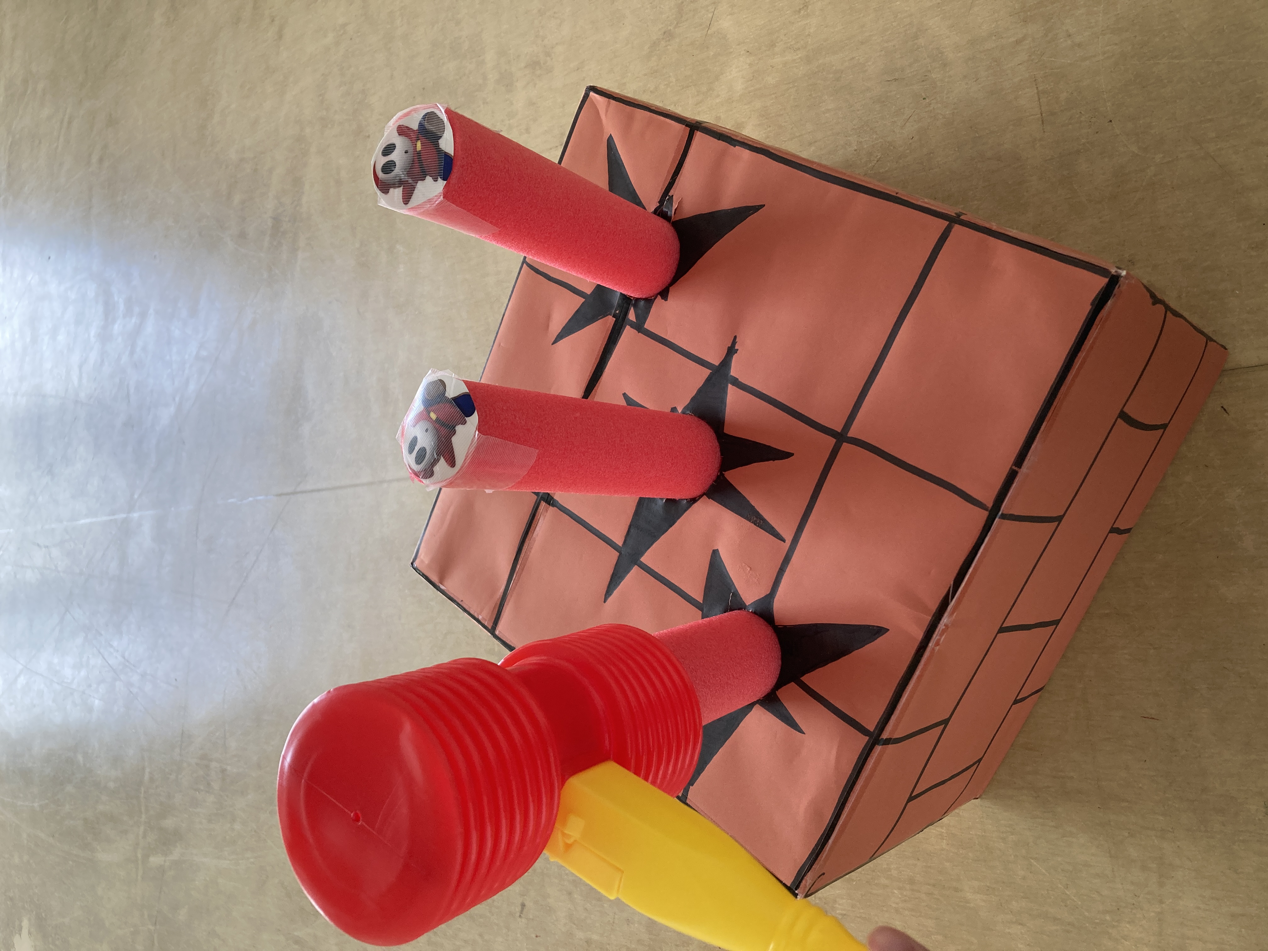 | 使い方 | ・2つのもぐらたたきを隣に並べ、「よーいどん。」の掛け声の後ハンマーでキャラクターをたたき穴に落とす。先に3匹とも見えなくなったほうが勝ち。 |