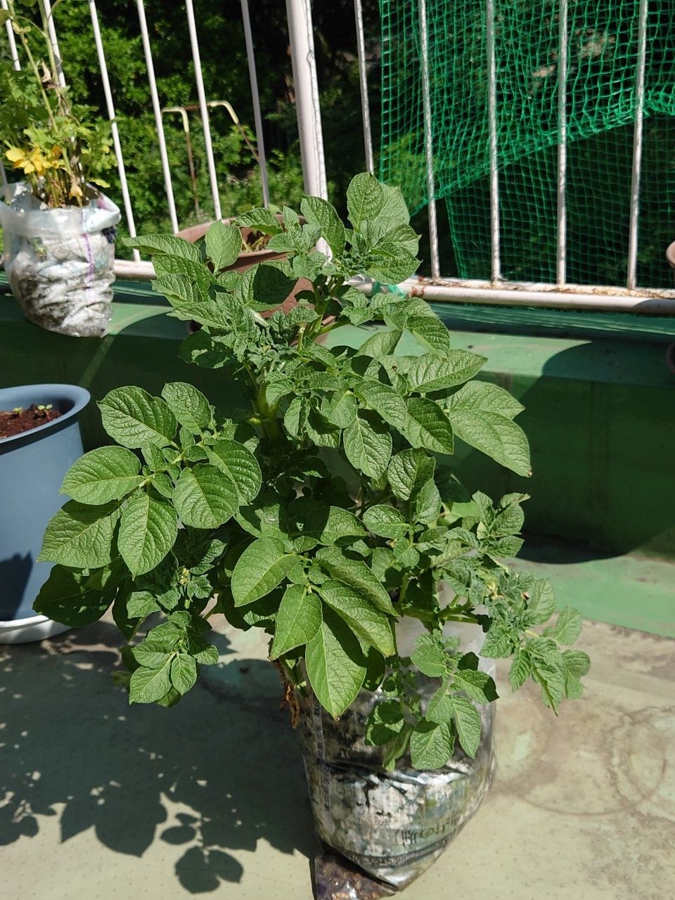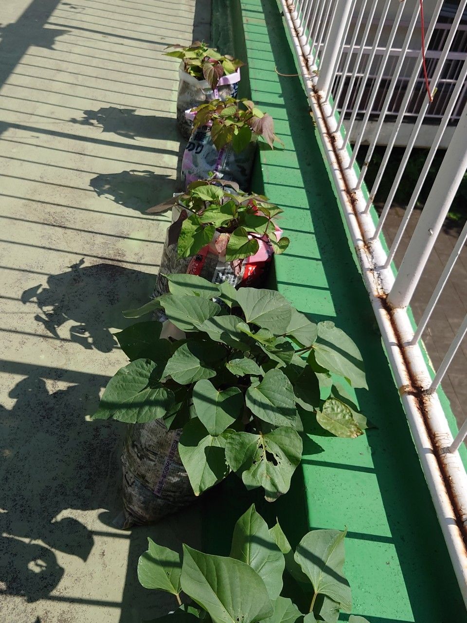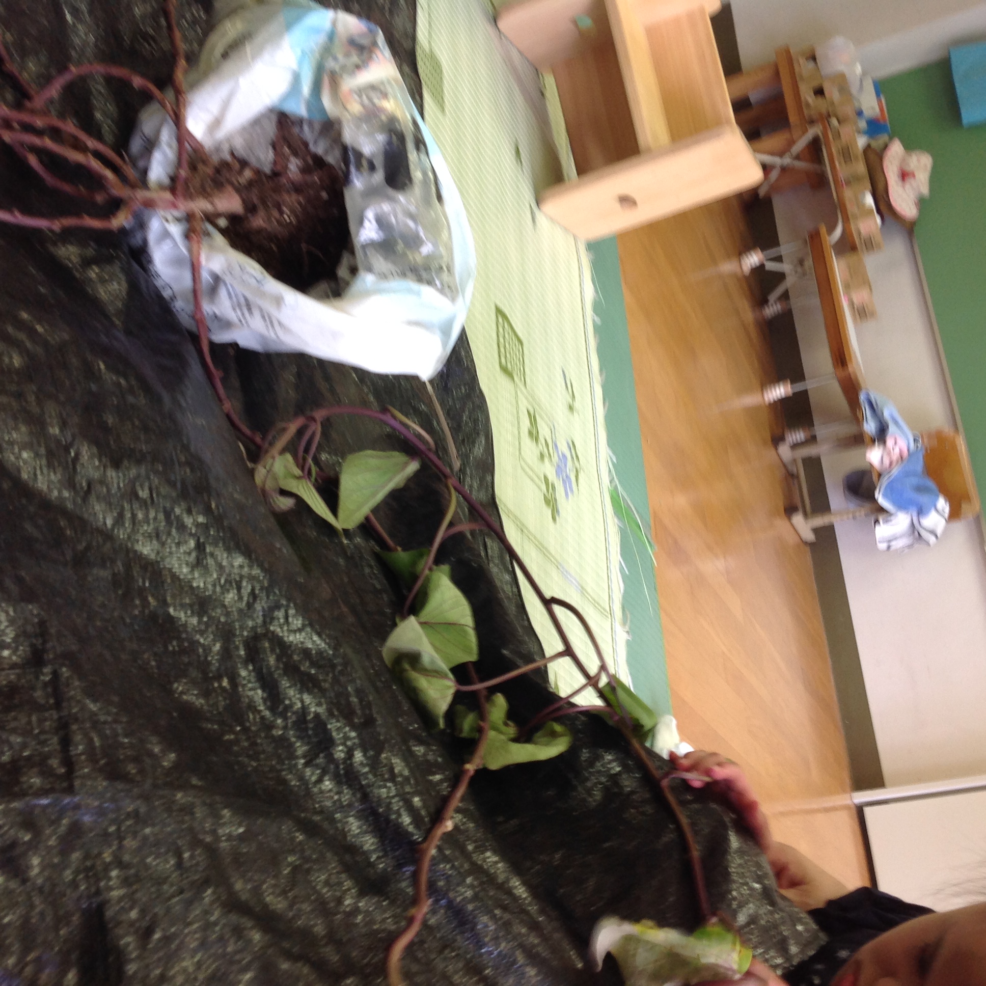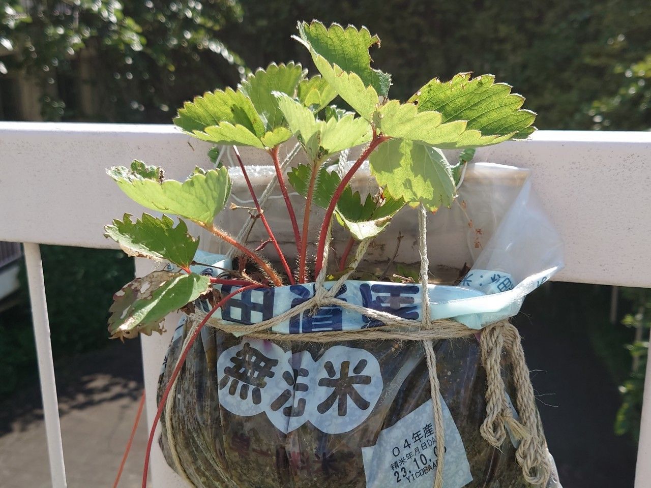 ・給食で使用した米袋の内側に新聞紙を一周して、その中に土を入れます。 ・5㎏の米袋はイチゴなどを植え、ベランダ等の手すりに落ちないように設置します。10㎏の米袋はサツマイモ、ジャガイモ、稲、スイカ、カボチャ、キュウリ、トマト、ニンジンなど育てることができます。 *米袋の内側に新聞紙をセットするのは、光が入らないようにするためです。 |